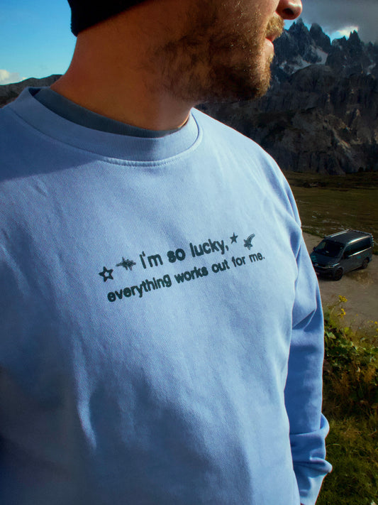 The Lucky Crewneck in Periwinkle