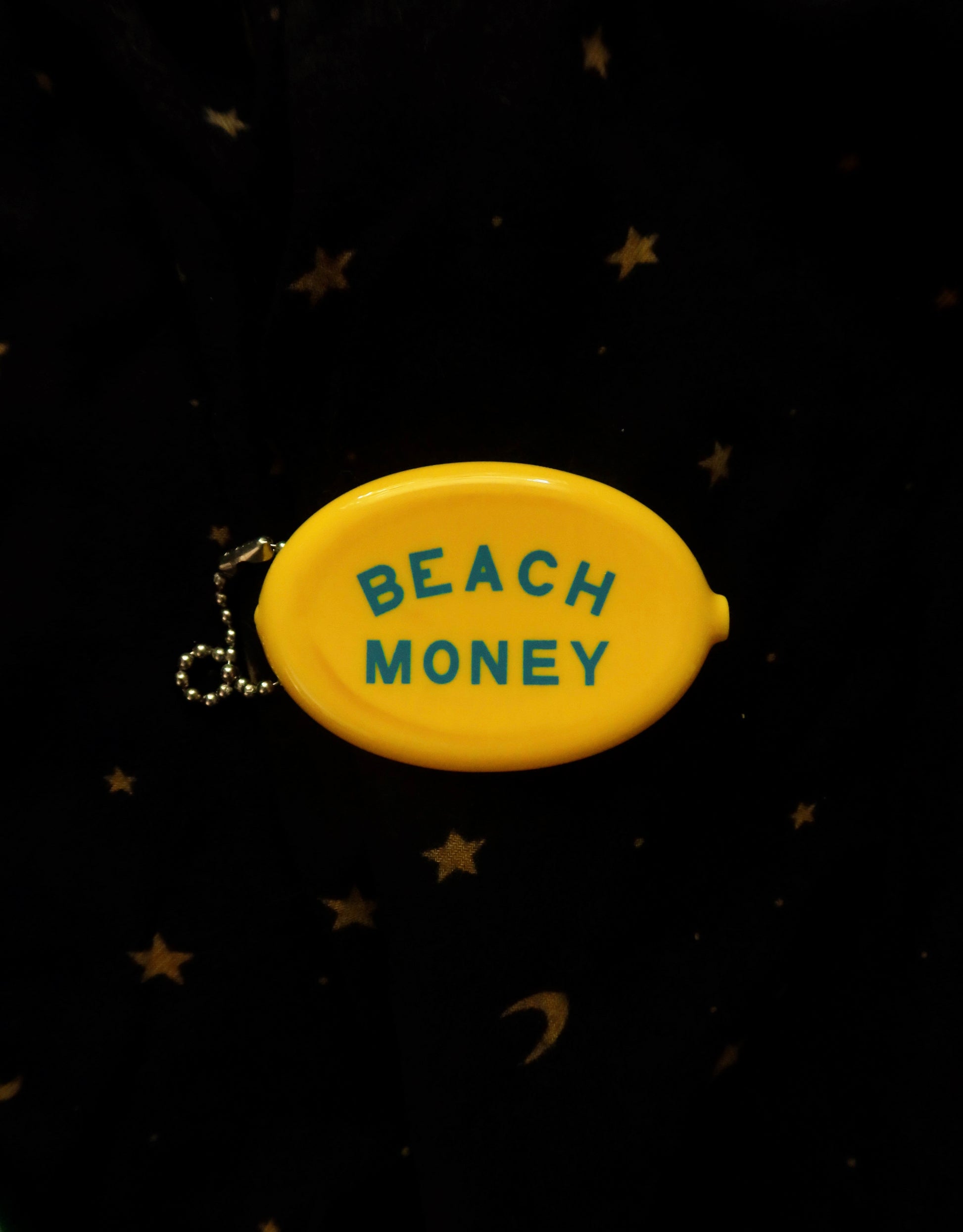 Measurements: 3” x 2” This pouch is yellow with a "Beach Money" message in blue. Made in U.S.A.