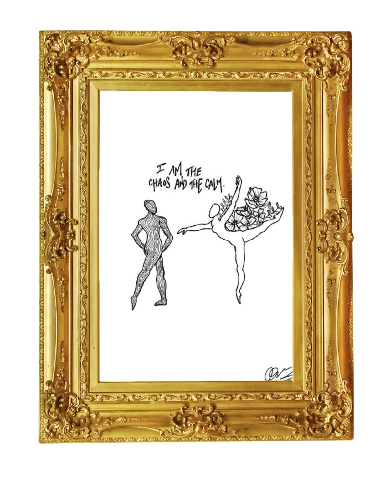 Print of the design "I am the chaos and the calm" from the mental health part 3 series