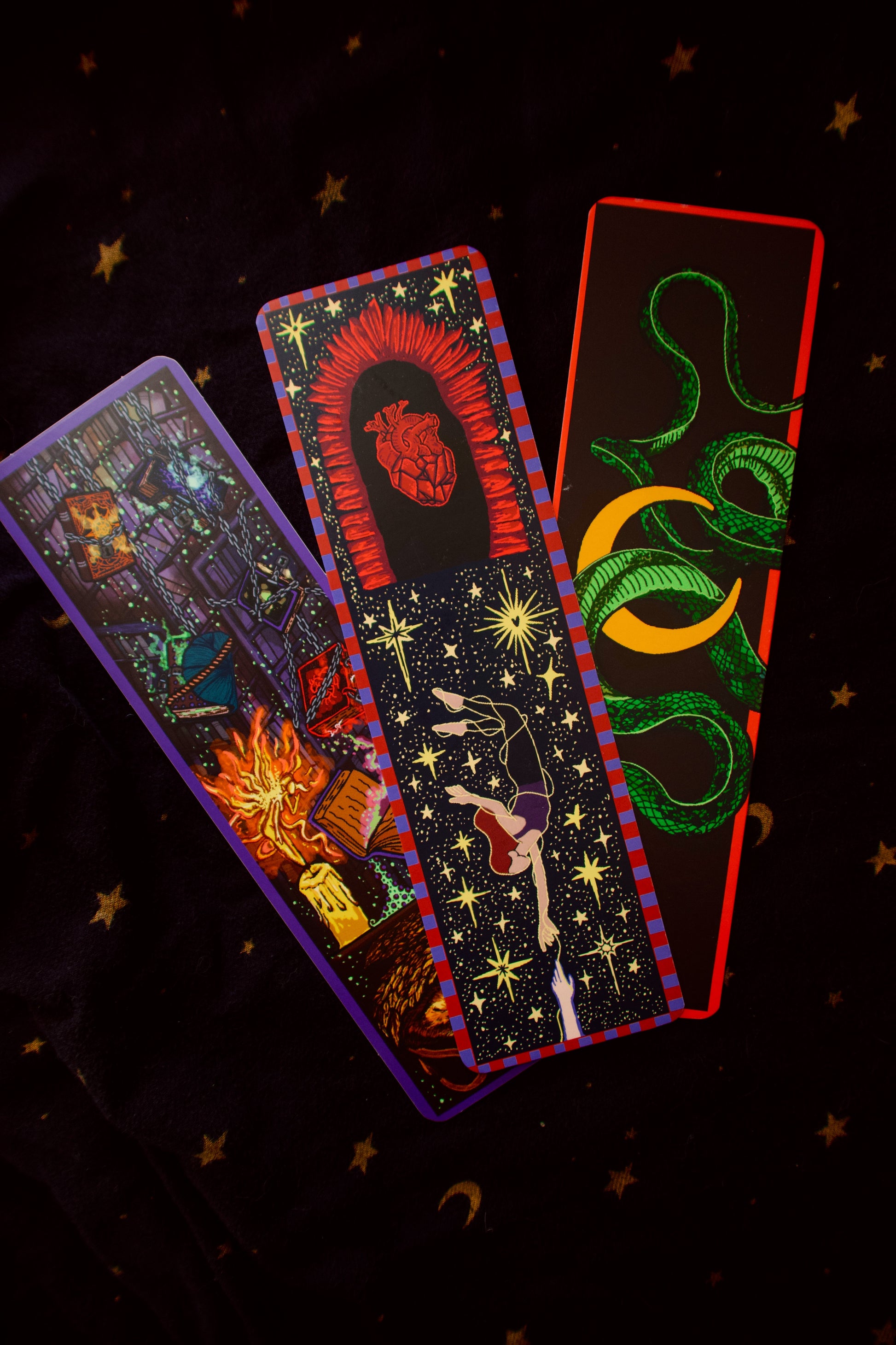 this bookmark set is inspired by the book series Crescent City including the drop bookmark featuring Bryce and Danika, the viper queen bookmark, the Jesiba’s Library featuring Lehabah and Syrinx bookmark. Slight pixelation is normal in these designs as they were drawn by me digitally on procreate.