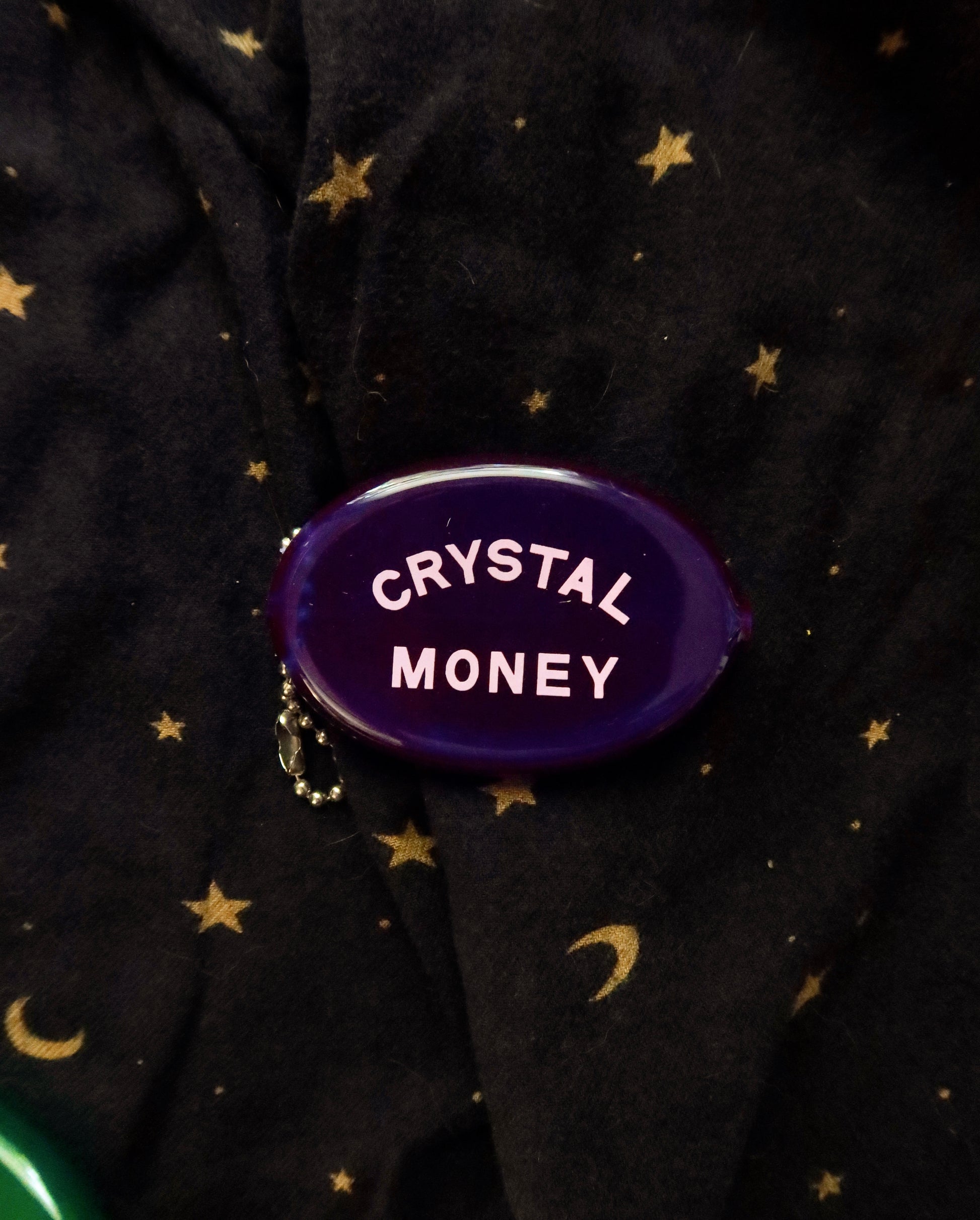Measurements: 3” x 2” This pouch is yellow with a "Crystal Money" message in light purple. Made in U.S.A.
