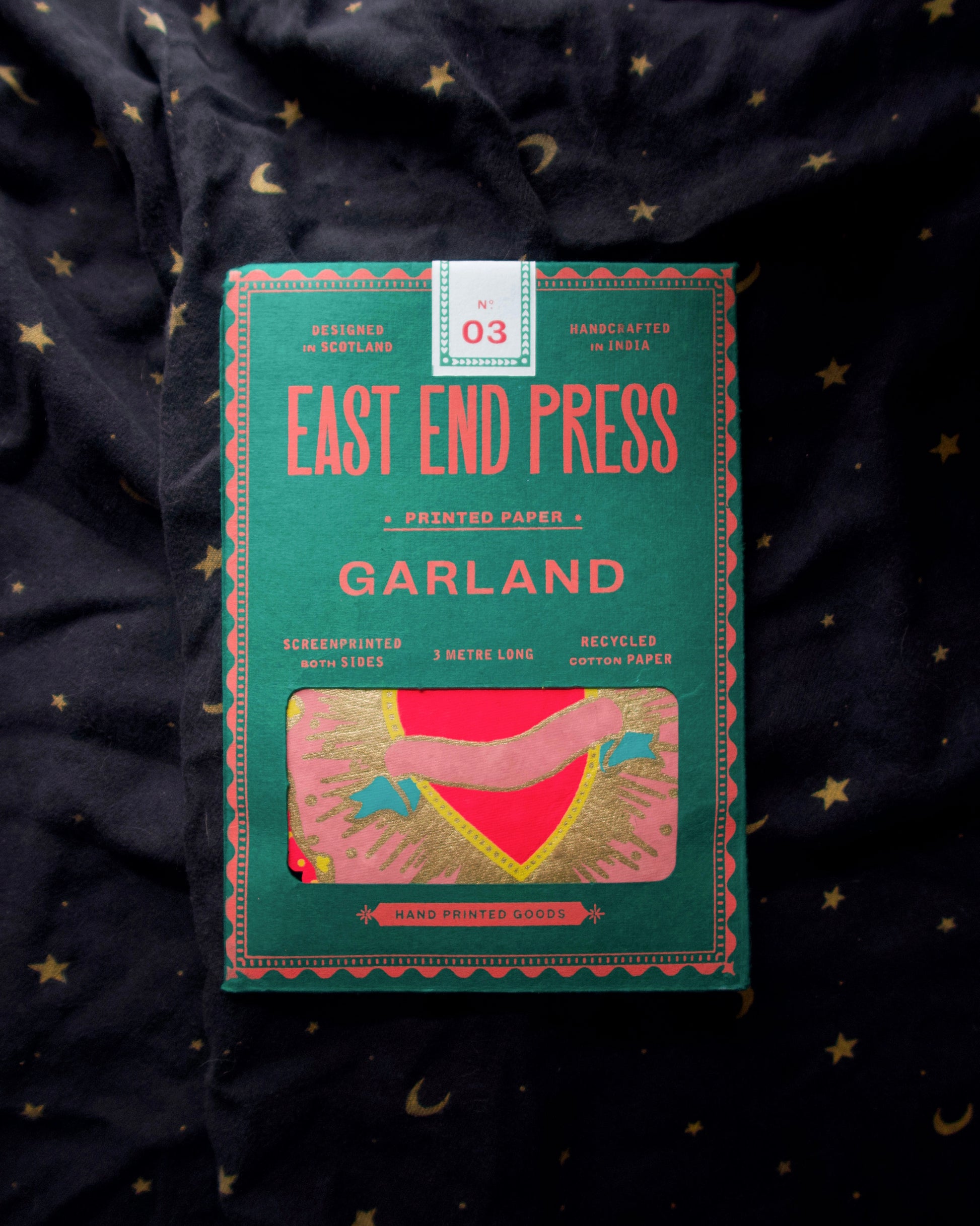 3 metres long - Includes 10 paper shapes, sewn along strong cotton thread - Screen printed by hand on both sides by talented artisans in Jaipur - Sustainably made from recycled materials