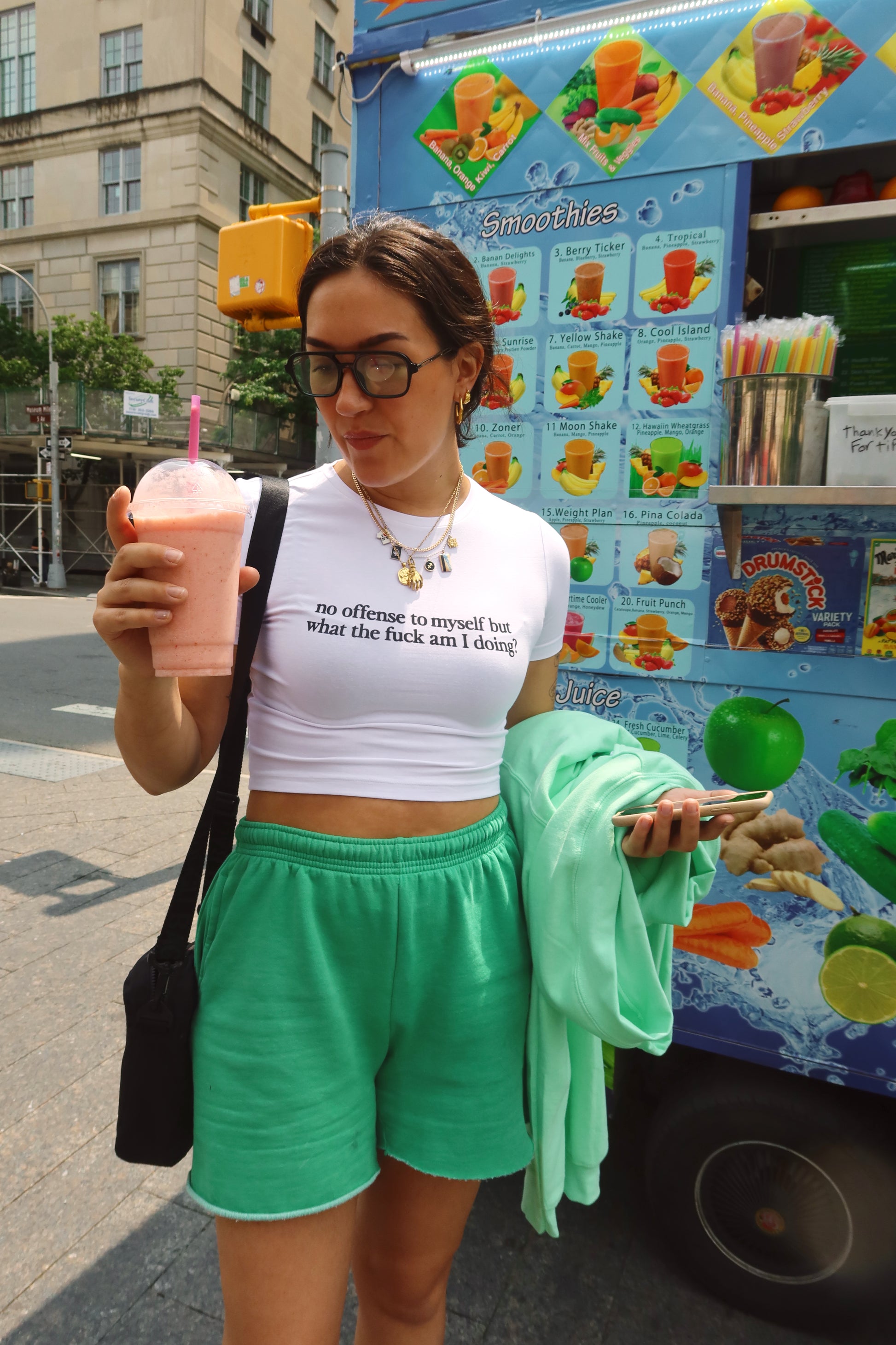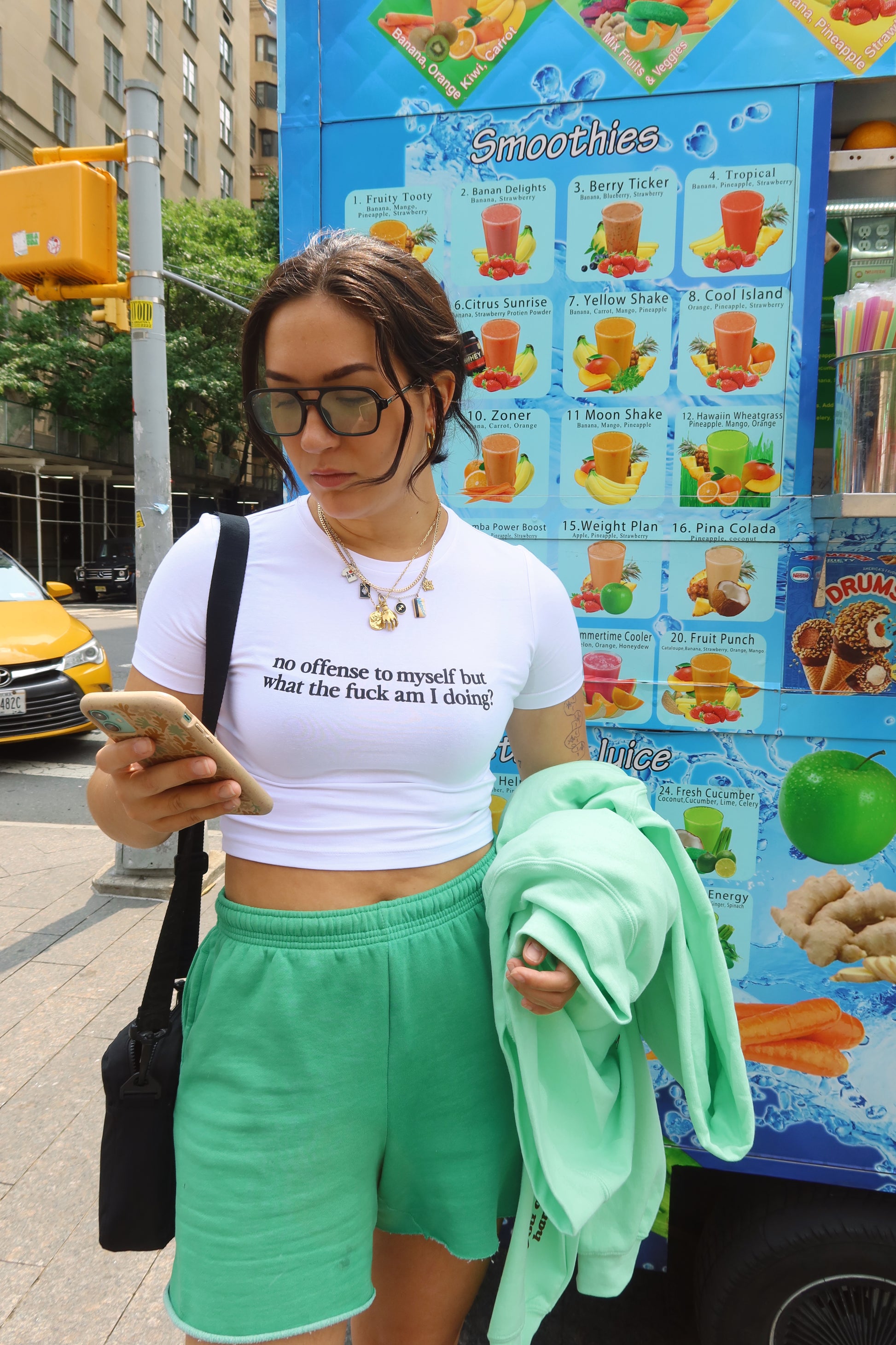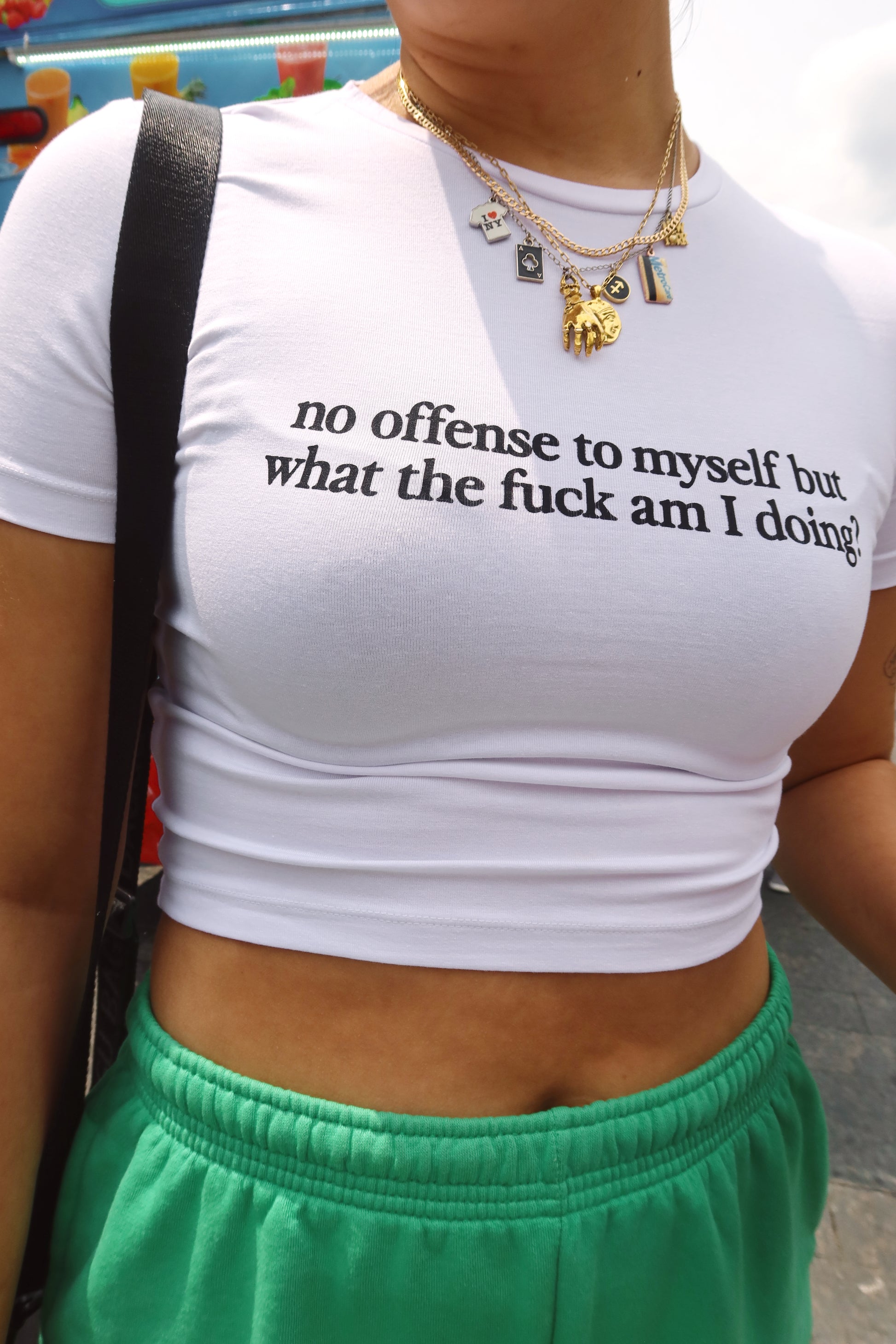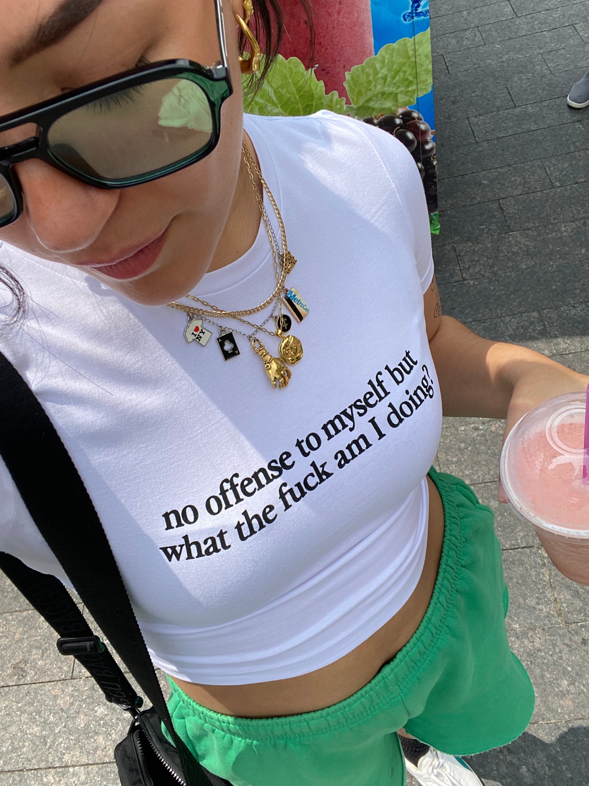 + this baby tee style shirt fits true to size, model wearing a size S