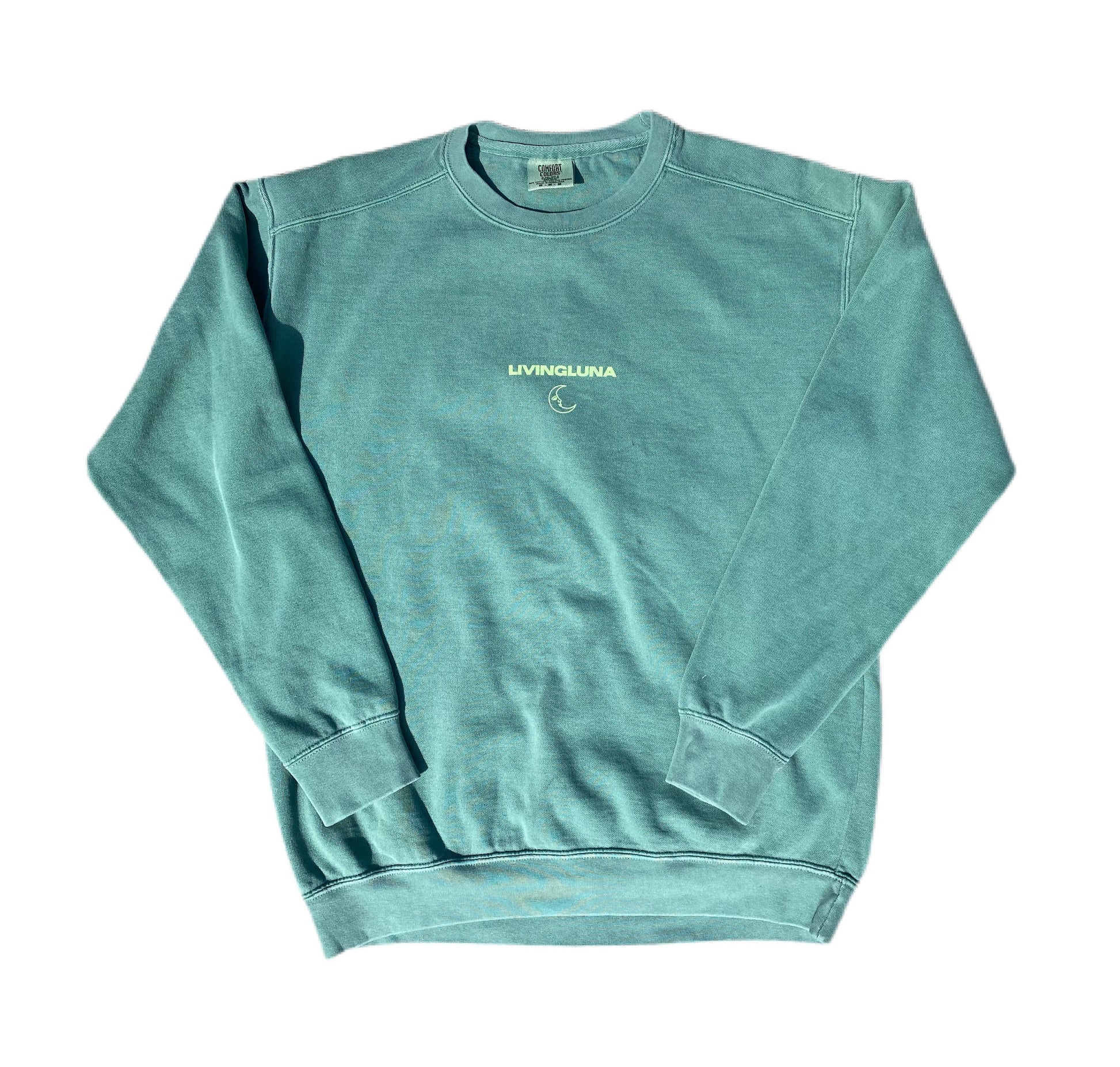 This hand screen printed crewneck is printed on unbelievably soft 100% cotton Comfort Colors sweatshirts with lime green ink.