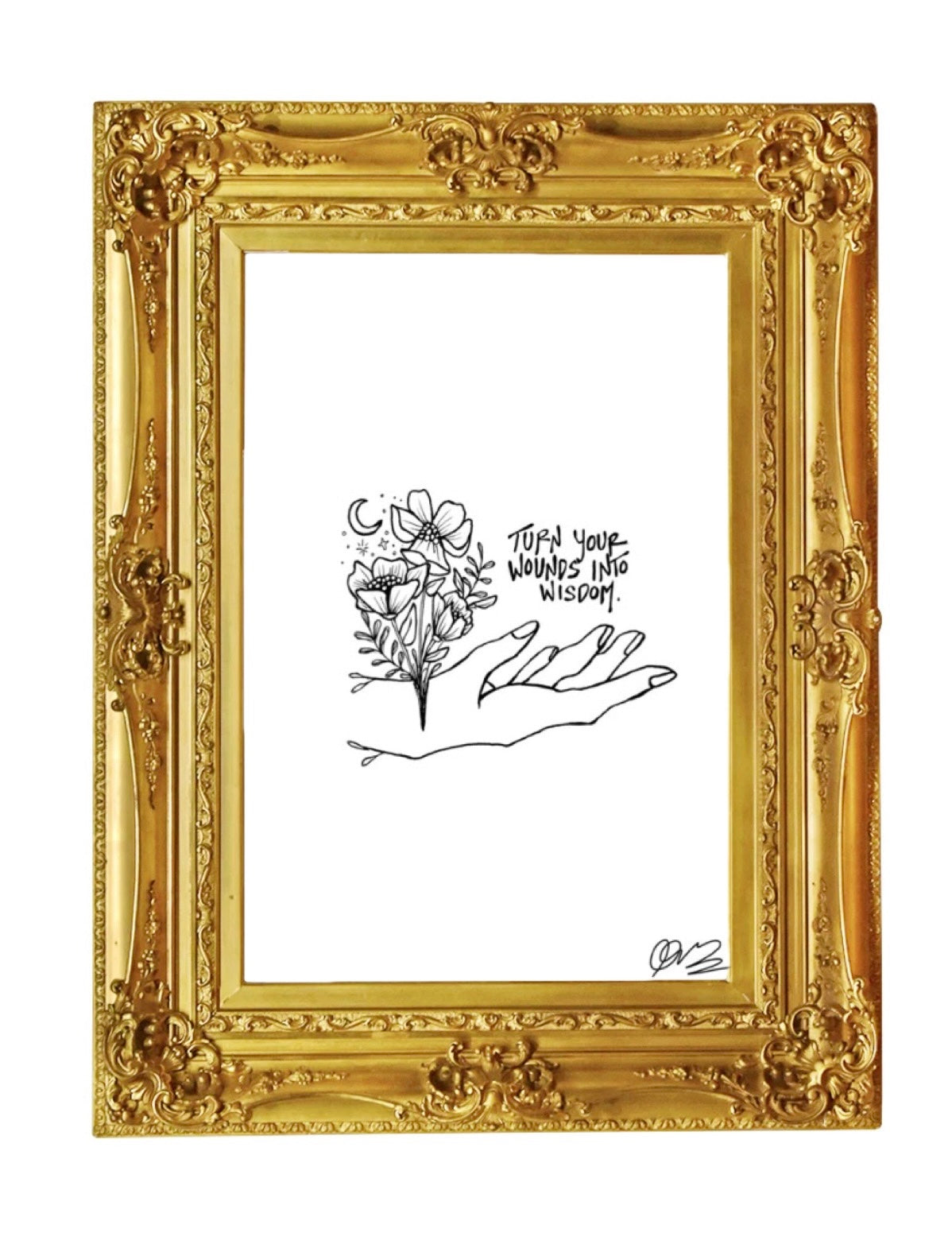 Print of the design "turn your wounds into wisdom" from the mental health pt. 3 series