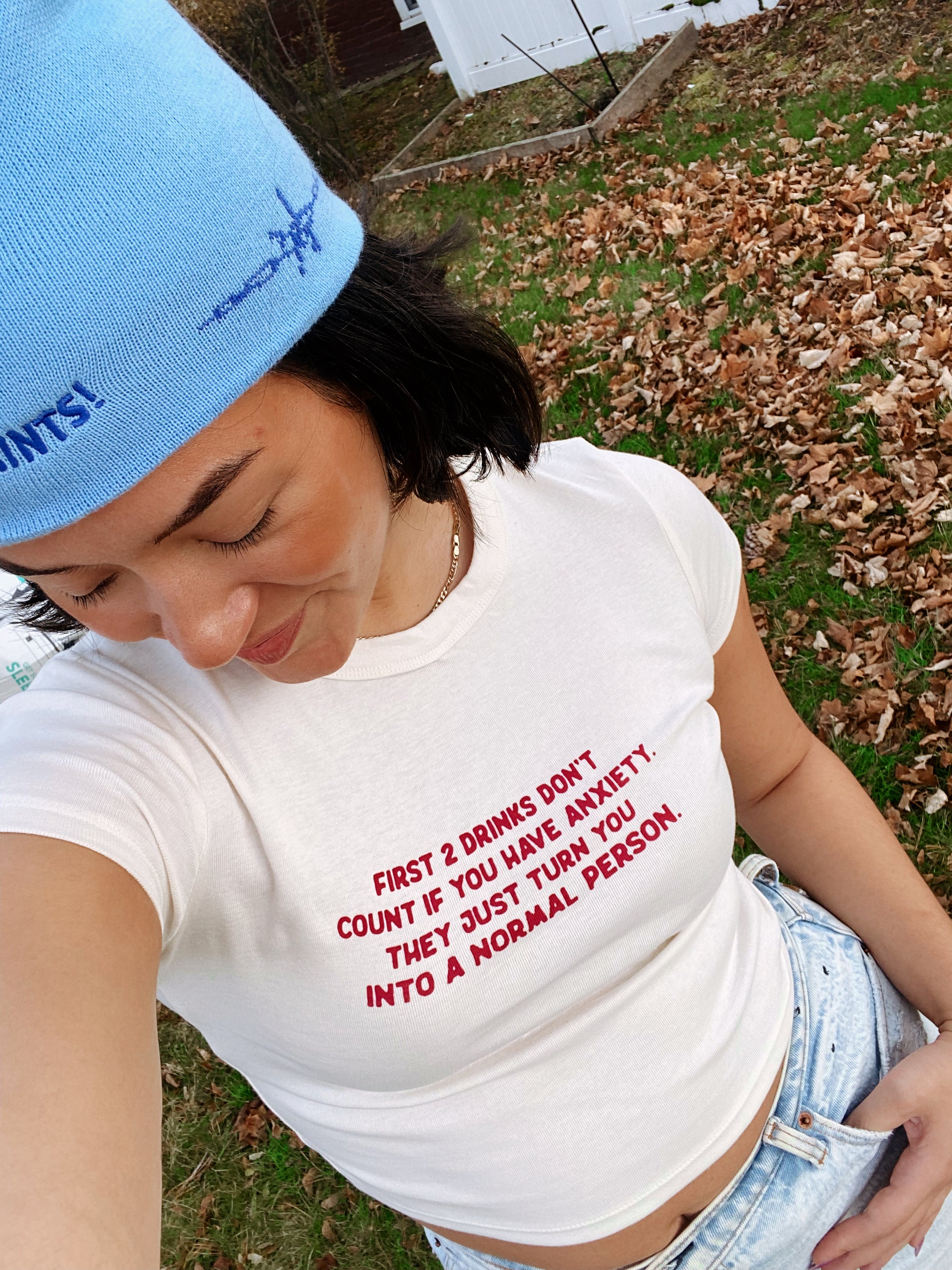 + style: the first two drinks don’t count if you have anxiety, they just turn you into a normal person