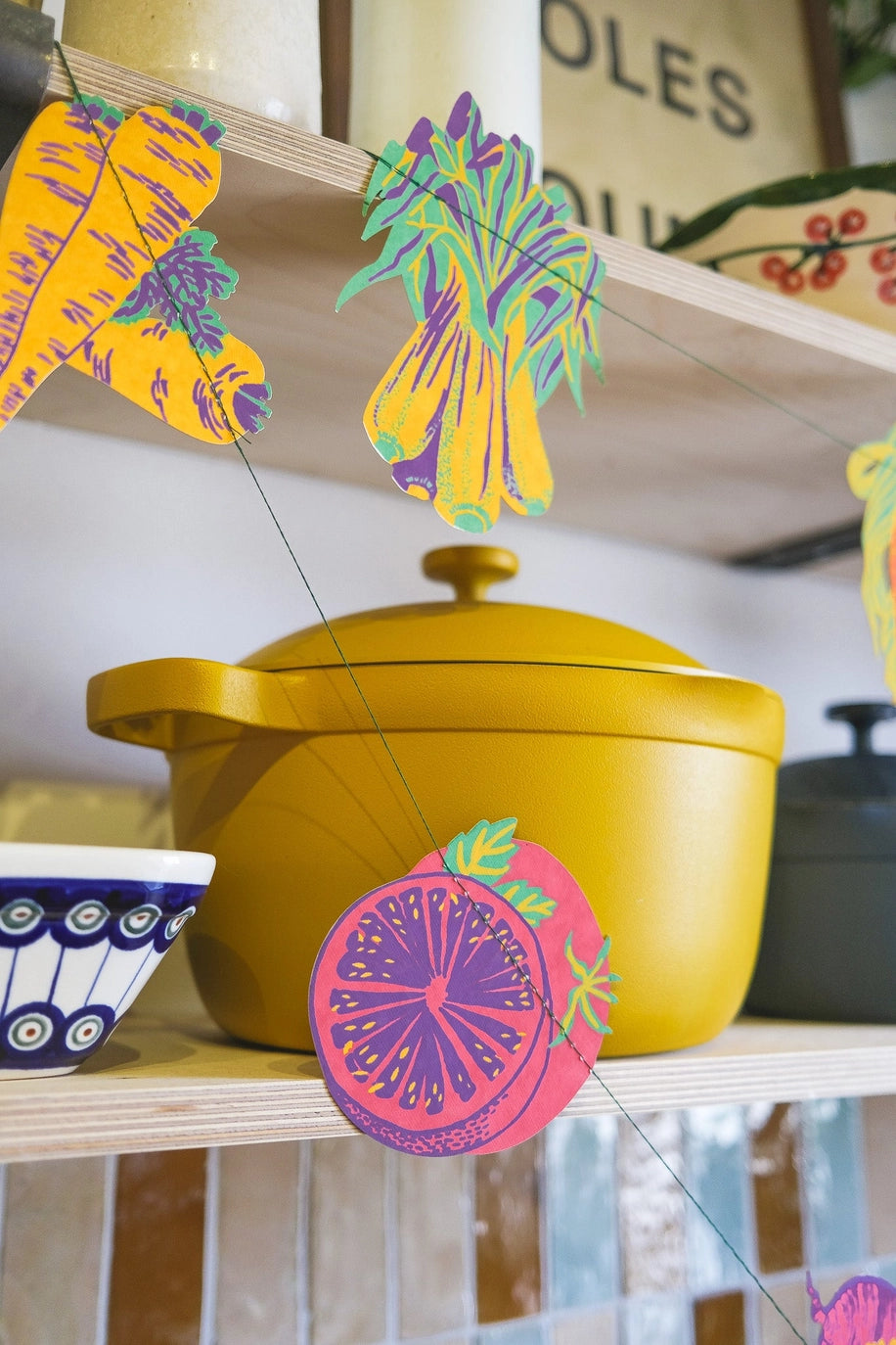 Each of the twelve vegetables in this three-metre-long garland is scrumptiously unique. Perfect for your five-a-day!